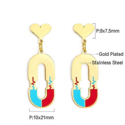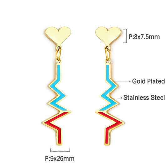 Stainless Steel Heart-shaped with ECG Mixed Color Earrings