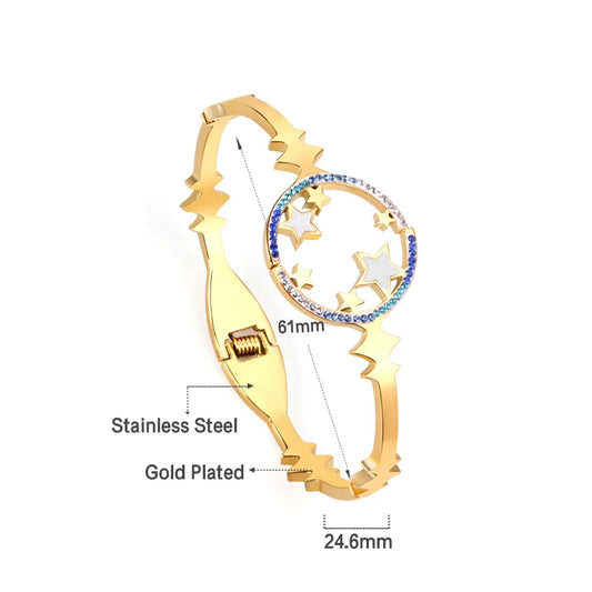Wholesale Gold Color Steel Hollow Out Heart Pattern Bangles For Women Friends Gifts Cubic Zirconia Bracelets On Hand Jewelry