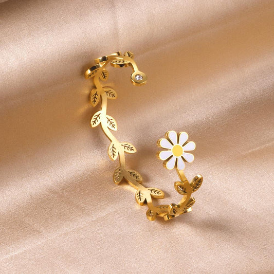 Wholesale Daisy Cuff Bangles Gold Color Plant Boho Opening Bracelets For Elegant Ladies Fairy Girls Jewelry pulseiras feminin