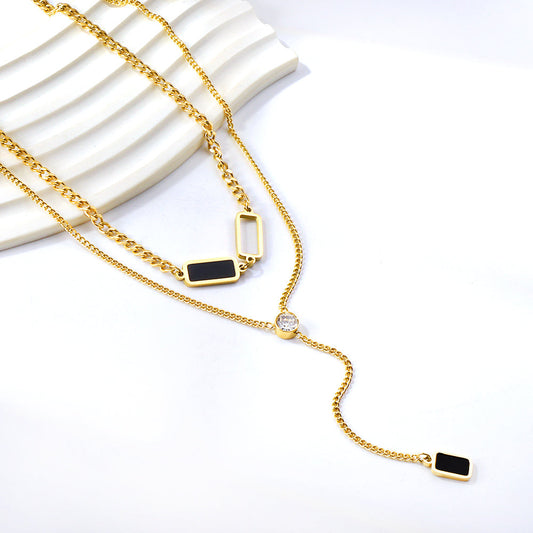 Wholesale 2 rectangular black oil drops + 1 long square box + white diamond pendant double chain 50+45+5cm