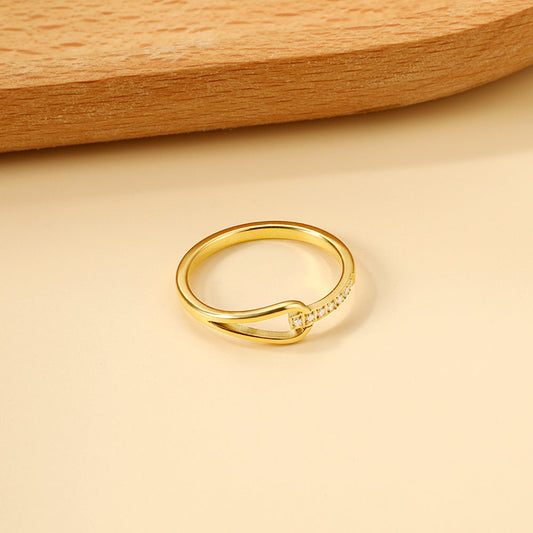 Wholesale Simple and exquisite gold color love heart geometric diamond encrusted stainless steel ring