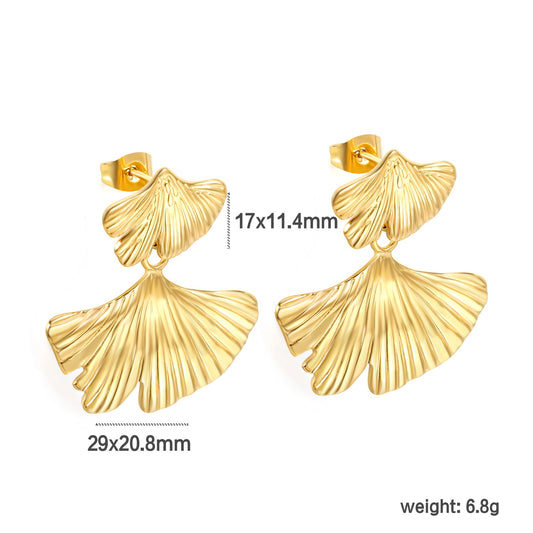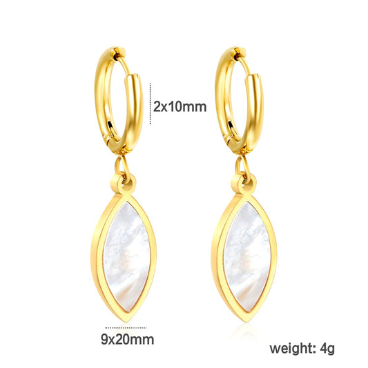 Regular price From $1.98 USDRegular priceUnit price / perSale price From $1.98 USD2*10mm I.D. Circle with 9*20mm Leaf Shaped White Shell Earrings Steel/Golden