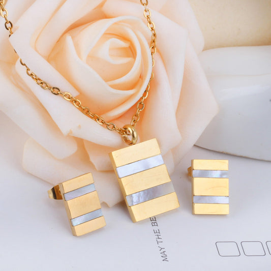 Steel/golden rectangle with two rectangles + shell jewelry set