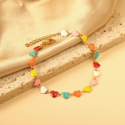 Colorful Oil Heart Bracelet 18+3cm