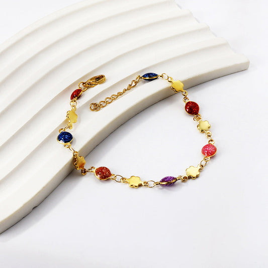 7 mixed color gold sand stones + 6 peach blossom accessories pendant bracelet 17+3cm