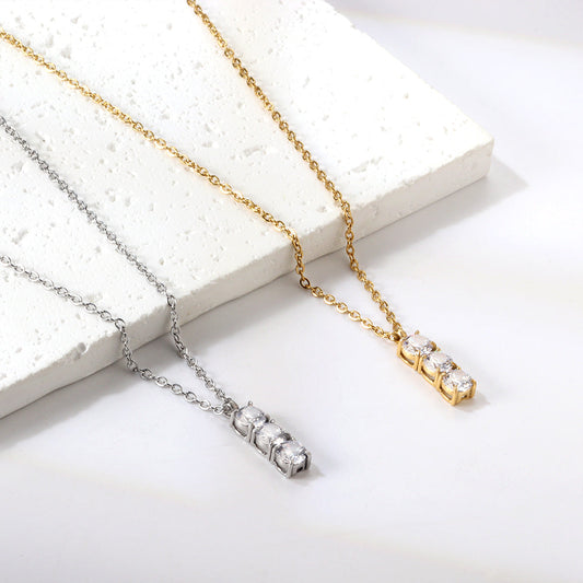 Regular price From $3.21 USDRegular priceUnit price / perSale price From $3.21 USDfour claw three white round diamonds pendant necklace 45cm
