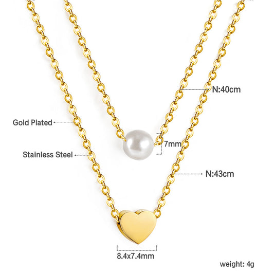 Heart + White Pearl Pendant Double Chain 43+40cm