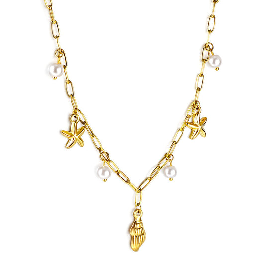 Regular price From $2.99 USDRegular priceUnit price / perSale price From $2.99 USDShell + 2 starfish with 4 white pearls pendant necklace 45+5cm