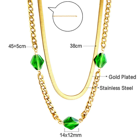 Regular price From $2.70 USDRegular priceUnit price / perSale price From $2.70 USD3 Rhombus Green Diamonds Accessory Double Chain Necklace