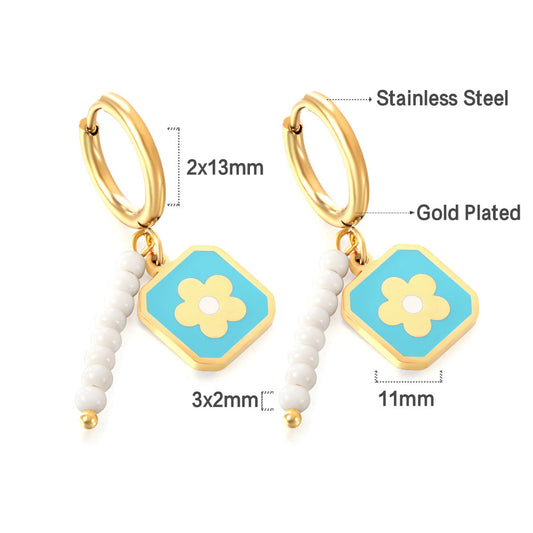 Regular price From $1.52 USDRegular priceUnit price / perSale price From $1.52 USDStainless Steel Circle With 8 White Beads+Square With Blue Peach Blossom Earrings