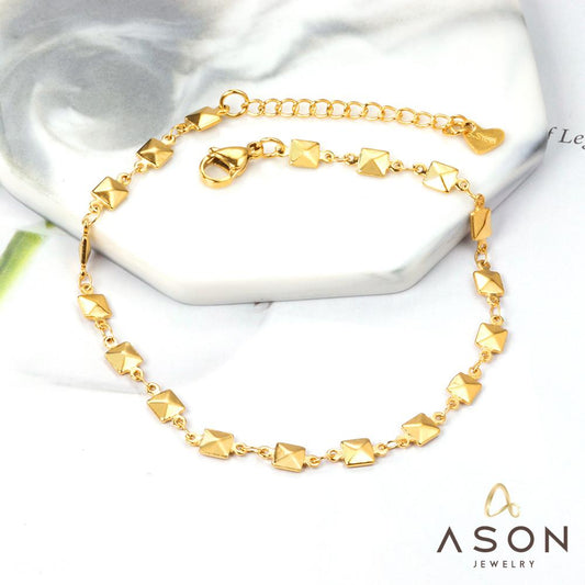 ASON Gold Color Square Charm Geometric Anklet Stainless Steel Foot Chain Beach Jewelry for Women Party Gift Fashion Jewelry