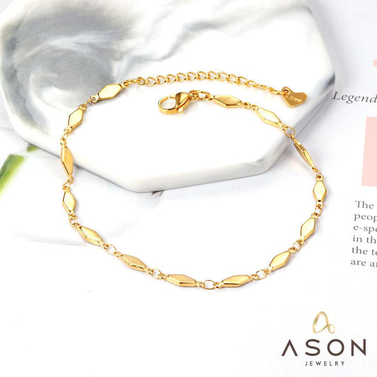 ASON Geometric Anklet Charm Foot Chain with 22+5cm Extender Gold Color Stainless Steel Fashion Jewelry Gift Accessories