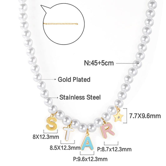 ASON Cute Imitation Pearl Necklace with STAR DREAM Letter Pendant Chains for Women Stainless Steel Jewelry Party Gift