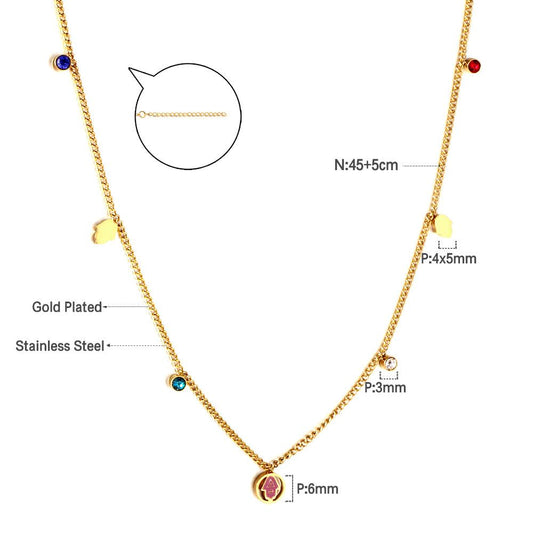 ASON Tomato Pendant Multi Layer Necklace Gold Color Stainless Steel Chain with Cubic Zirconia for Women Girl Fashion Gift