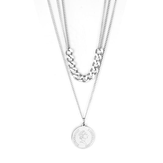 ASON Double Chain Women Pendant Necklace Stainless Steel Cuban Link Choker for Women Fashion Jewelry Accessory Gift