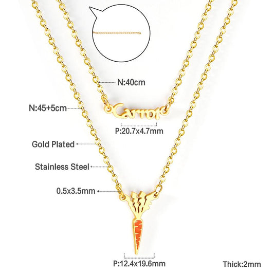 ASON Gold Color Unusual Carrot Pendant Necklace Double Chain Stainless Steel Necklaces for Women Fashion Jewelry Gift