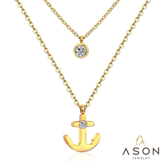 ASON Collier Femme Stainless Steel Double Chain Necklace Gold Color Anchor Pendants Women Choker Collars Fashion Jewelry