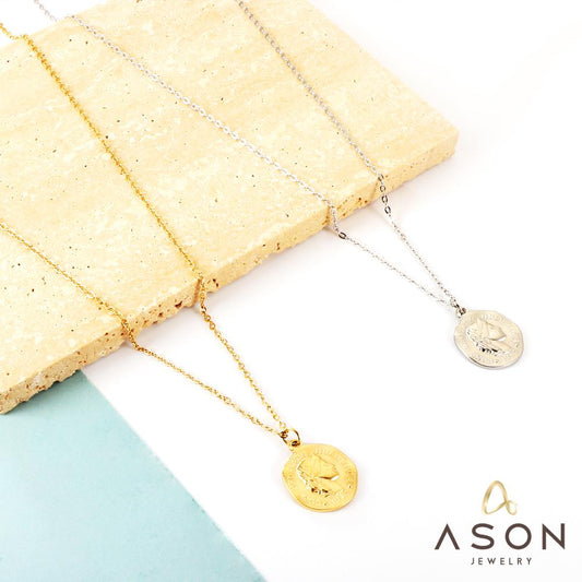 ASON Vintage Round Head Pattern Accessory Charm Pendant Necklace Gold Color Stainless Steel For Women Men Jewelry Chokers