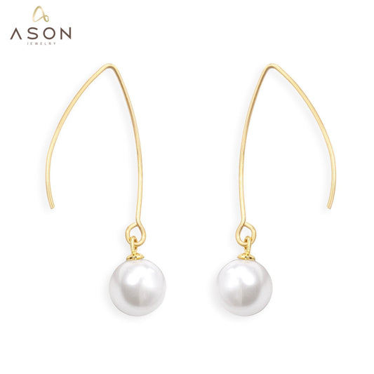 ASON Stylish White Imitation Pearl Drop Earring 316L Stainless Steel Dangle Earring for Women Daily Wear Party Gift Jewelry