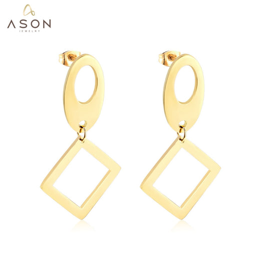 ASON Classic Gold Color Square Pendant Dangle Piercing Earrings Stainless Steel Drop Earring for Women Accessories Jewelry