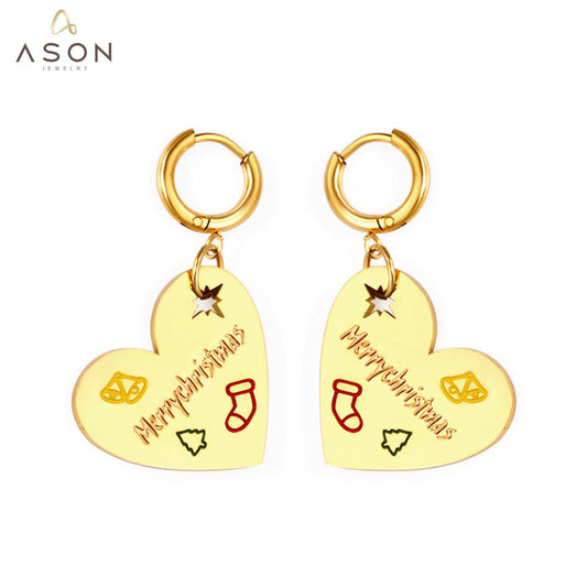 ASON Fashion Gold Color Heart Drop Earrings Jewelry Stainless Steel Dangle Earring for Women Christmas Gift Accessory