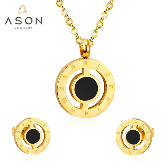 ASON Round Love Shell Top 316L Stainless Steel Gold Wedding Jewelry Sets for Women Necklace Pendant Small Stud Earring