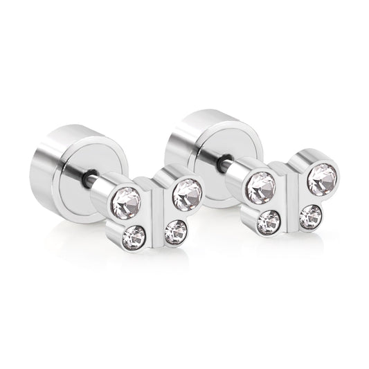 Regular price From $7.84 USDRegular priceUnit price / perSale price From $7.84 USD12 pairs 3mm/4mm/5mm/6mm/7mm/8mm gold/steel color four-grip round white diamond screw plugs