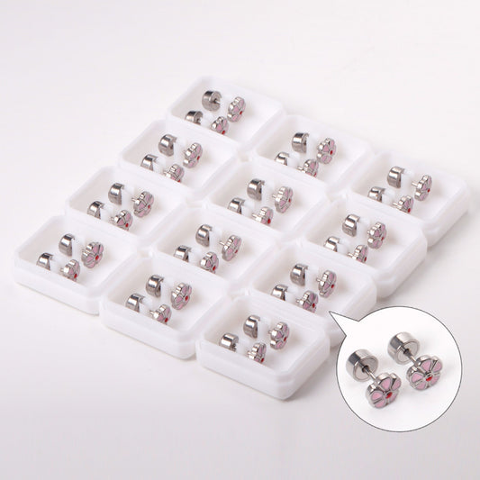 12 pairs 4mm round cake + 8mm cherry blossom mixed 6 colors studs steel / gold