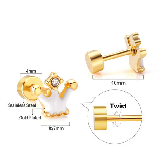 12 pairs 4mm round cake +8*7mm crown mix 6 colors studs steel/golden
