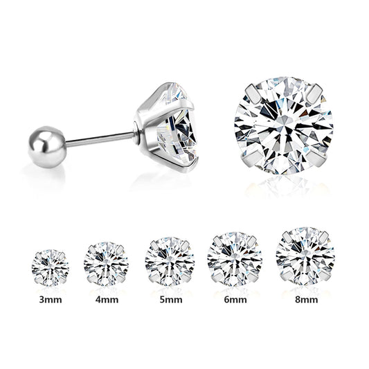 12 pairs 3mm/4mm/5mm/6mm/7mm/8mm gold/steel color four-grip round white diamond screw plugs