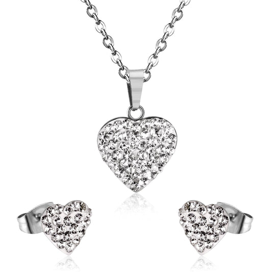 ASON Love's Heart Cubic Zirconia Pendant Necklace Earring Fashion Party Wedding Accessories Stainless Steel Necklaces