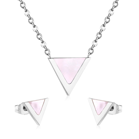 ASON Children Triangle Pendant Necklace Stainless Steel Small Stud Earrings Shell Jewelry Sets Party For Girl Women Fashion