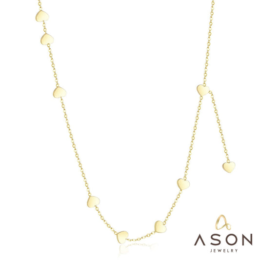 ASON Gold Love Heart Pendant Girl Necklace Stainless Steel 45cm+5cm Extender Chains Necklaces Collares Wedding Accessories