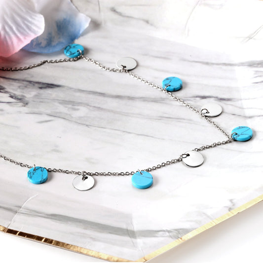 ASON 10mm Round Handmade Blue Stone Choker Collars Necklaces Stainless Steel Silver Color Chains Pendant Necklace Female