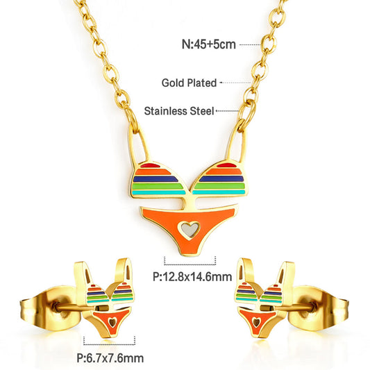 Stainless Steel Bikini Mixed Color Jewelry Set Enamel Girls Kids Jewelry