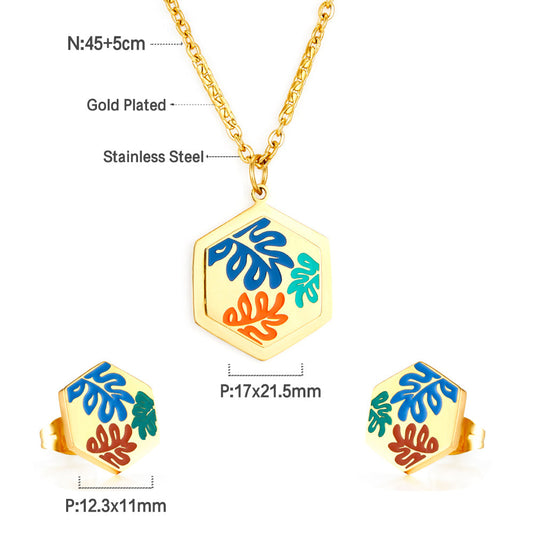 Hexagon Edge With Mixed Color Leaf Jewelry Set Enamel Girls Kids Jewelry