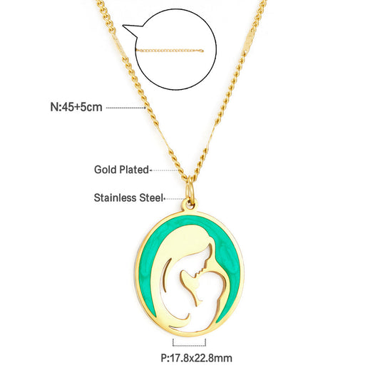 Stainless Steel Fashion Green Mother and Baby Accessory Enamel Girls Kids Jewelry Necklace