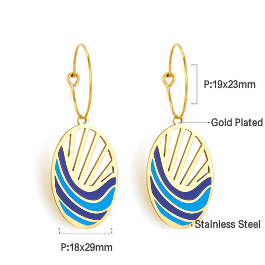 Girls Kids Jewelry Stainless Steel Half Bead With Oval Sunshine Sea Mixed Color Earrings