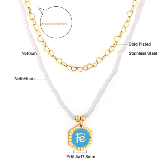 Regular price From $2.53 USDRegular priceUnit price / perSale price From $2.53 USDWhite Pearl Chain with Hexagon Fe Blue Accessories + Chain Double Chain Necklace