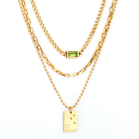 Green Square Shiny Zirconia Necklace Triple Multi-layer Square Pendant Necklace For Woman Mix Chains Thick Collier