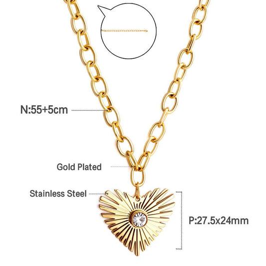 Stainless Steel Jewelry Thick Link Chains For Woman Sculpture Big Heart Punk Collares Boho Trendy Necklaces