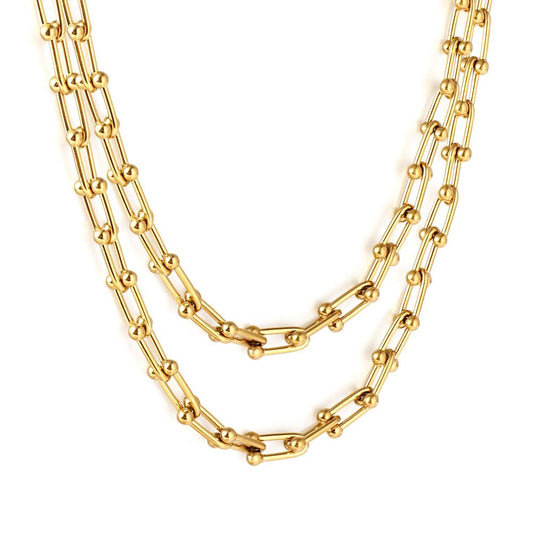 Regular price $3.70 USDRegular priceUnit price / perSale price $3.70 USDMen And Women Double Chain Necklace Stainless Steel Gold Silver Color Fashion Block Pendant Necklace Accessories