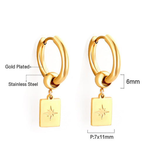 Round Beaded Hoop Earrings Women Accessories Stainless Steel New Square Star Pendants Earring Fashion Jewelr