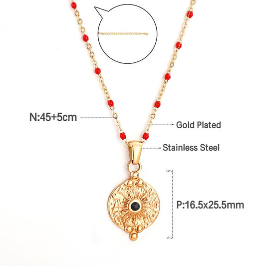 Red Beads Chain Bohemia Collier For Goth Choker For Woman Vintage Pendant Necklace Female Stainless Steel Jewelry
