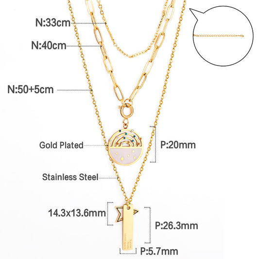 Wholesale Stainless Steel Chains Necklace for Women Girls Gold Color Round Lucky Star Pendant Collars Female Accessorie 2025 New