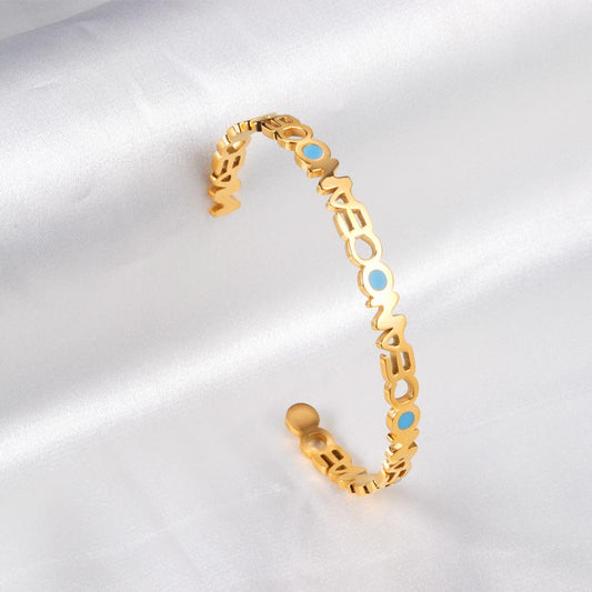 Mental Cuff Bracelets For Female Letter Stainless Steel Bangles With Blue Printed Christmas Vibe Trendy Jewelry Man
