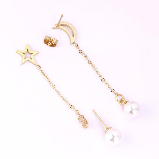 Fashion Women Drop Earrings Moon Star Shape Fake-Pearl For Women's Jewelry Stainless Steel Dangle Earings Brinco