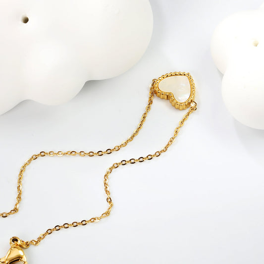 10.7*9.7mm bead edge heart shape with white shells accessories bracelet 17+3cm+6mm round end tag gold color