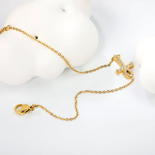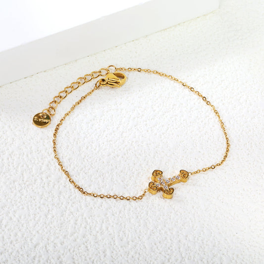 11*15mm Cross CNC White Zirconium Accessory Bracelet 17+3cm+6mm Round Tail Plaque Gold Color