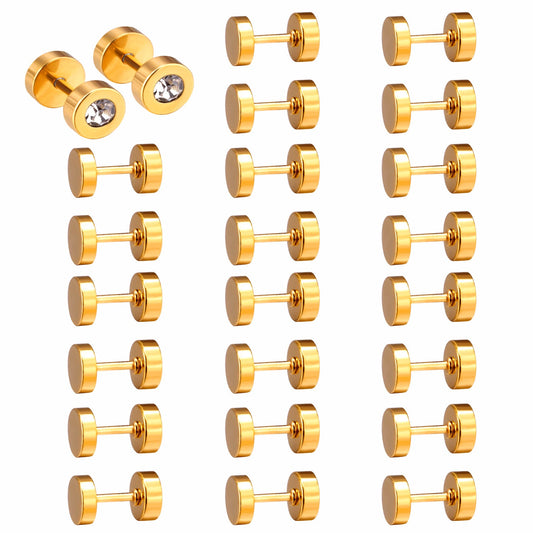 12 pairs 7mm Gold/Steel Plum White/Black Diamond Screw Plugs